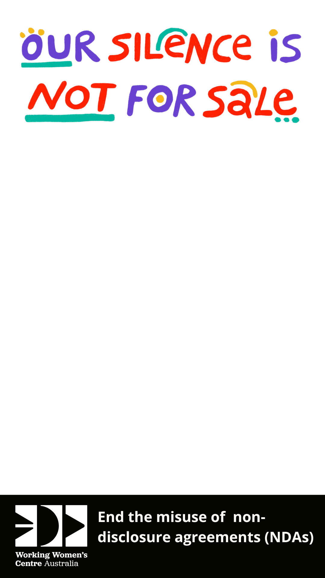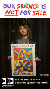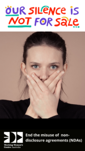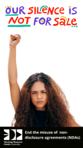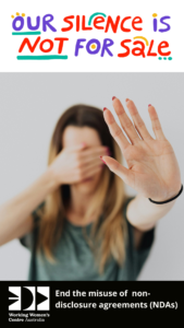 For far too long working women have been silenced from speaking up on workplace sexual harassment and discrimination. The misuse of NDAs in Australia must end now. #OurSilenceIsNotforSale