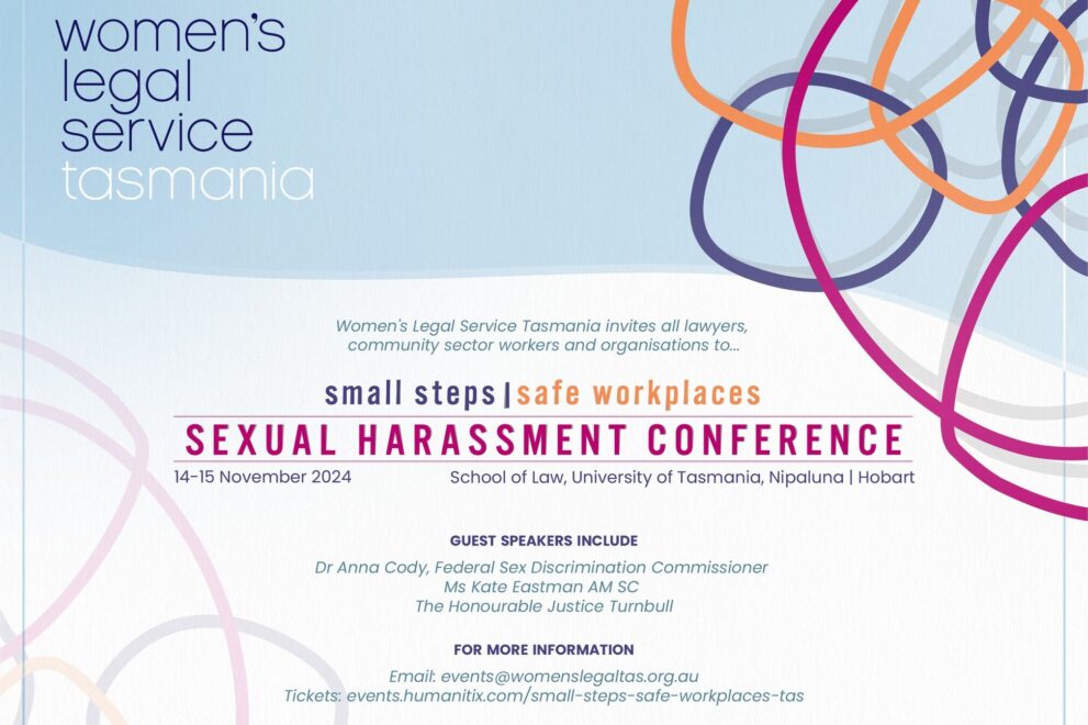 The Small Steps | Safe Workplaces Sexual Harassment Conference will be held on November 14-15, 2024, at the University of Tasmania’s School of Law.